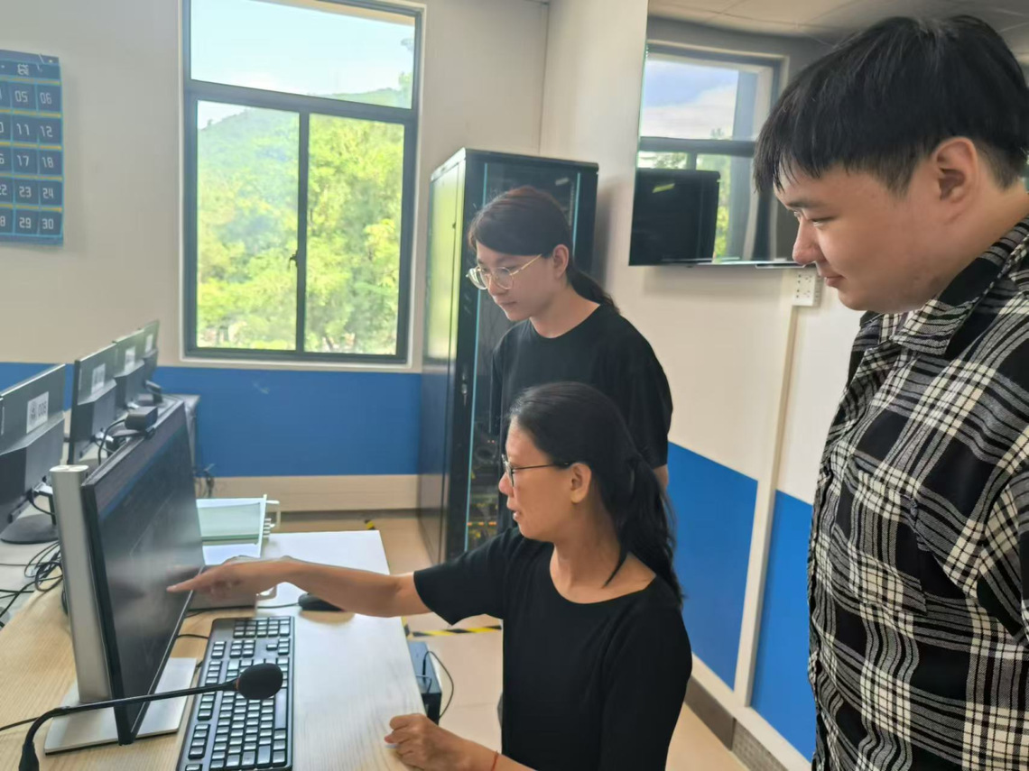 童俊鸣与指导教师杨婷婷及小组同学讨论