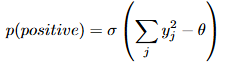 其次,了解了正负样本的含义,再看“优度”,论文给出了一种比较简单的函数,层活动平方和,即神经网络某一层的神经元输出的平方和:。然后,对优度减去1个固定值,使得对正样本都>0,对负样本<0。那以下面的概率作为目标函数