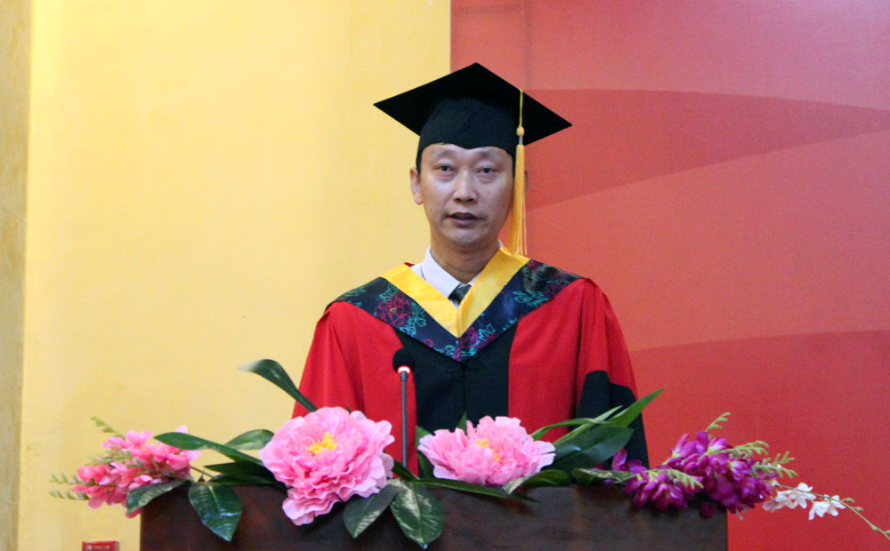 毕业生代表李科玮做了热情洋溢的发言,简要回顾了大学的朝夕相处、同窗情谊、耕耘收获,并表示将牢记领导和老师们的殷切期望,不忘校训,不忘胡杨精神,以饱满的热情和昂扬的斗志投身社会,服务社会,奉献青春,实现价值,感恩母校。