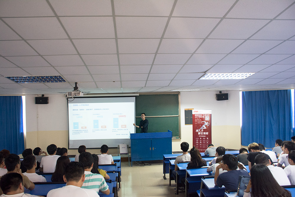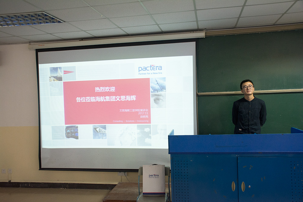 2017年11月10日下午14:00公司于5东101教室举办专场招聘会,主讲人是文思海辉的面试官赵明亮先生,参加本次招聘会的有公司思想导师彭婷、杨靖以及公司大四毕业生。