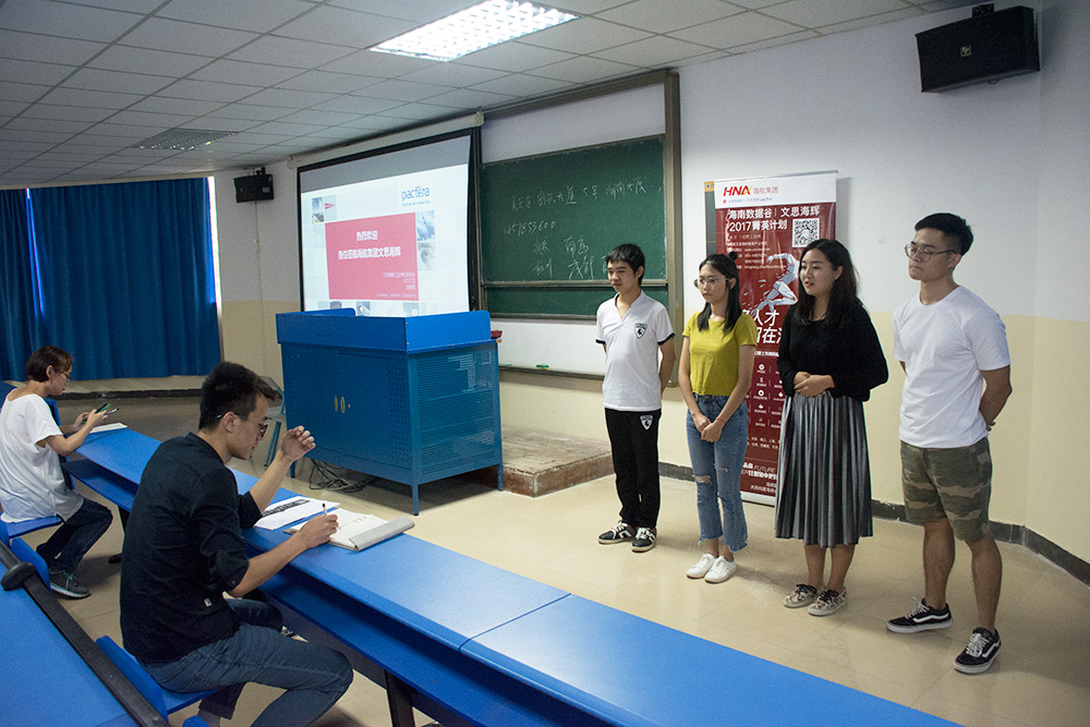 会议开始,赵先生介绍了文思海辉是一家全球性的IT服务企业,共有26000名专业人士,与全球各个IT公司都有着密切的合作关系,并且隶属于海航集团,可以体现出文思海辉公司是非常有实力的。随后赵先生又详细介绍了招聘的信息以及要求,其主题主要围绕人才的能力,他多次强调了“将人才留在海南”这一核心内容。赵先生也叙述了IT行业人才供需不成比例,供小于需的现状,这对于公司员工是一个良好的契机 。