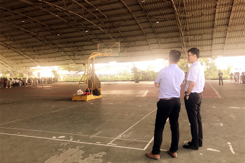 由公司承办的hy3380cc海洋之神2018届毕业生春季就业供需洽谈会即将开幕,4月20日,人才招聘处处长助理孙凡、公司团委书记朱广君、人才招聘处吴昌明老师以及公司思想导师彭婷在hy3380cc海洋之神风雨球场现场协调场地和商量展位分区等。