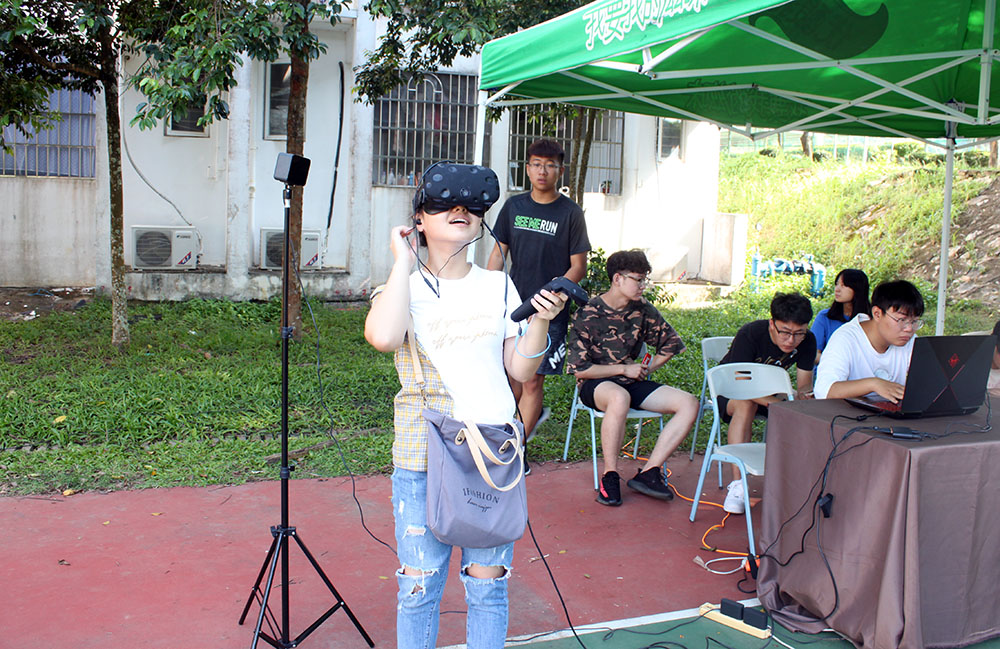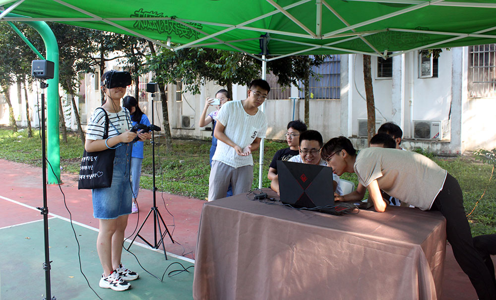 为了让同学们详细了解虚拟现实技术,体验科技魅力,同时提高专业能力,拓宽就业渠道,增加就业选择。2018年10月4日,在普天同庆的国庆小长假期间,公司在钟楼球场面对全校师生开放VR体验。