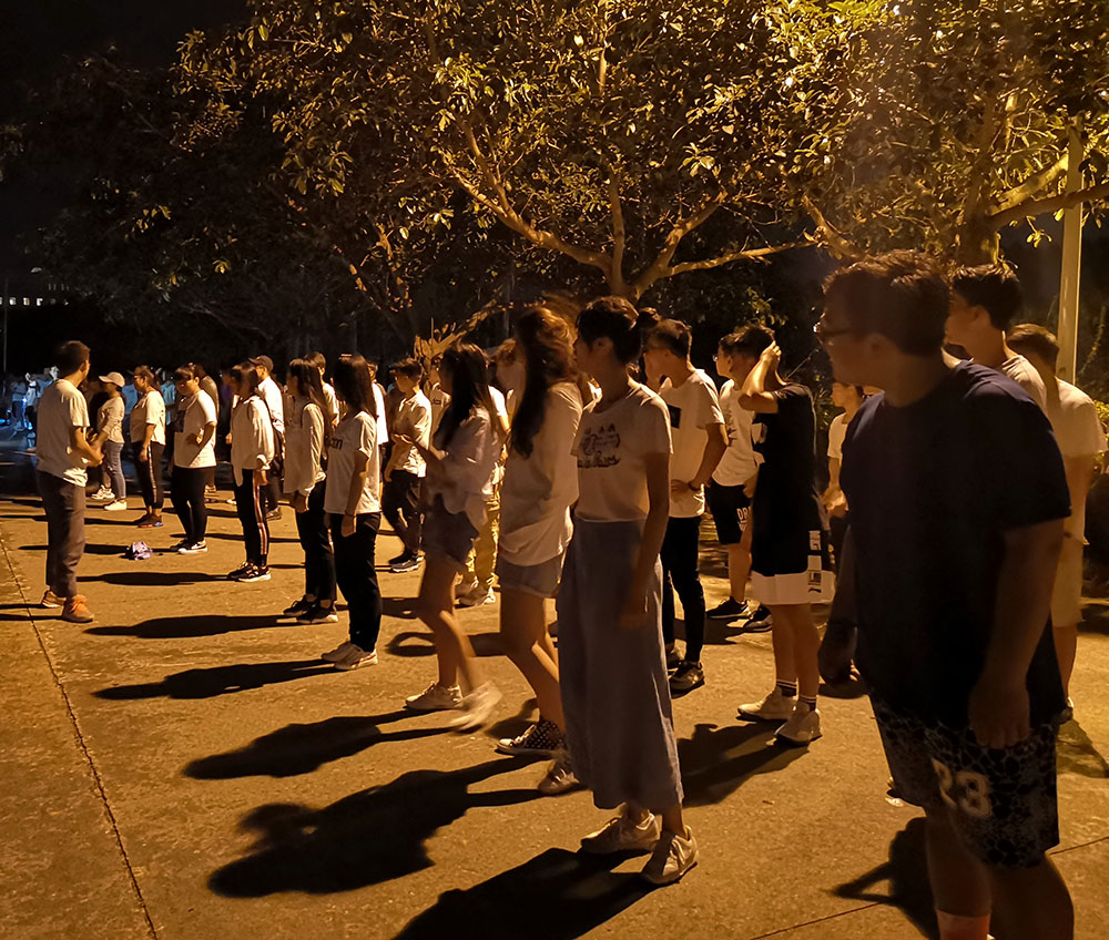 本次选拔首先由17级学长学姐带领着18级新生们进行简单舞蹈动作的训练,每个班级都由一位学姐或学长带领着。训练的方式是从班级内选出4排员工,同学们都积极的往前排站,跟着学长学姐们喊的拍子舞动起来,最后由刘馨莹学姐挨个检查训练的效果,从中选出表现不错的员工。刘馨莹学姐发言希望公司学子能积极参加“我和你”的活动,为公司争光。虽然天色已暗,但员工们都很热情,因为在学长学姐的带动下,玩的热火朝天,活跃而又不失纪律性,在学长学姐们的陪同下,伴随着新生们的欢声笑语,在场的所有人都努力展现自己对舞蹈的热情。紧接着,天空下起了蒙蒙细雨,新生们依旧热情高涨,学长学姐们仍然耐心地喊着响亮的拍子。