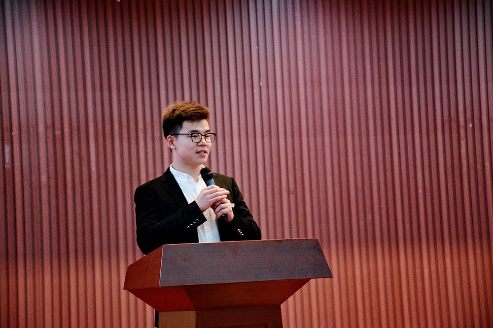 会议在一片热烈的掌声中开始,主持人首先讲解了此次演讲竞选的两个环节,分别为PPT演讲和即兴演讲环节,演讲结束由老师审判团打分和大众审判团投票。随后各位候选者在台上意气风发、激情饱满的进行了自己的竞选演讲,在竞选演讲环节结束后,紧接着开始了随机抽取问题的即兴演讲环节,此环节各位候选者显然没有上一场胸有成竹的气势,竞选者都显示出了一丝紧张的神色,好在每一位候选者都不是平平之人,所以也为台下的评审团展视出一场又一场的精彩演讲。会议室中不断响起热烈的掌声,在两个环节都结束的同时,工作人员收取了老师评审团的打分表和大众评审团的选票。