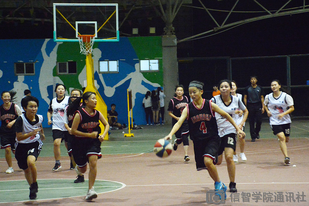 比赛在裁判的哨响声中拉开了帷幕。比赛初始,整个球场充满了紧张的气氛,球员的激情全都淋漓尽致地表现在篮球场上。比赛一开始,身穿白色球衣的外国语公司开端就表现出激烈的取胜愿望,她们借着身高的优势发起猛攻,以及在66号球员的带领下以矫健熟练的动作迅速传球,直逼篮板。刚开始公司队员没有掌握好节奏,比分一直僵持不下。