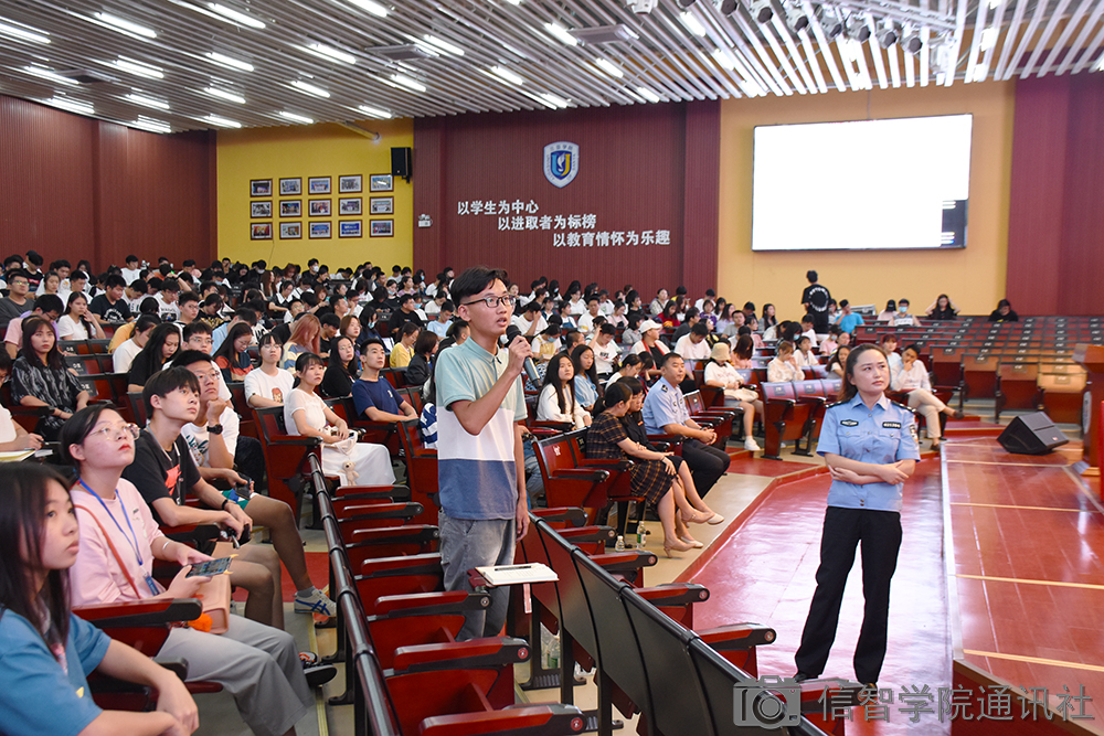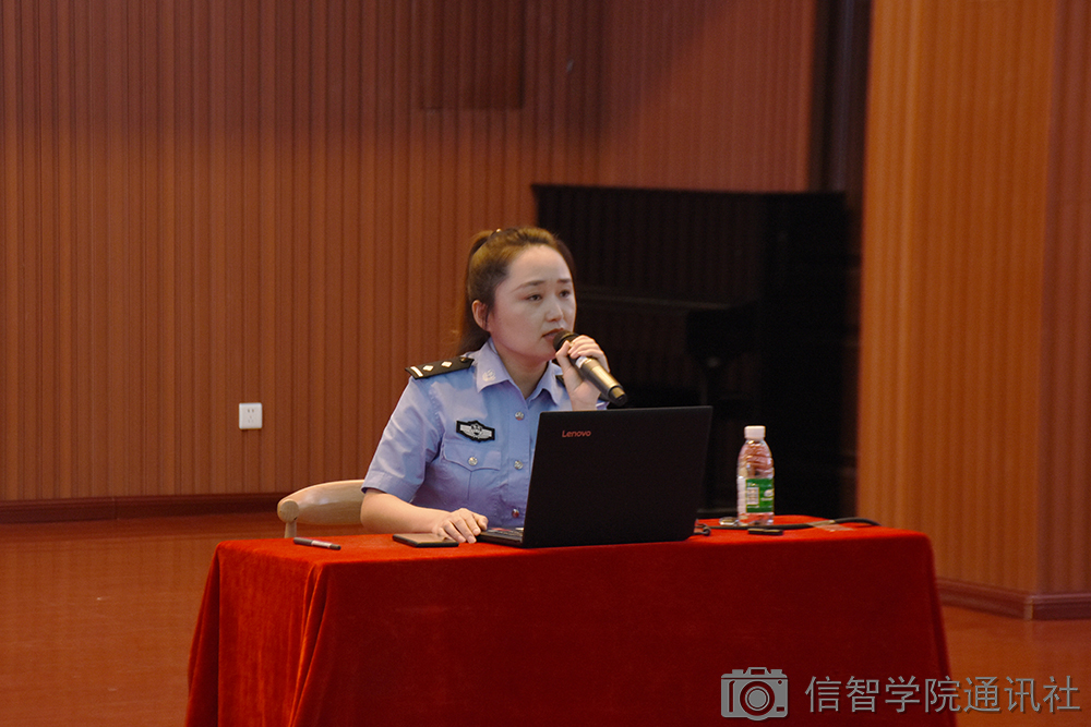 紧接着金警官以一部微电影《骗局》向大家介绍了兼职刷单诈骗、冒充公检法诈骗、冒充客服人员诈骗、网贷诈骗以及杀猪盘这五种常见诈骗方式。还以事件为例提醒同学们不要因为贪图小便宜而被不法分子有机可乘。最后,金警官还详细说明了防范电信诈骗的方法。