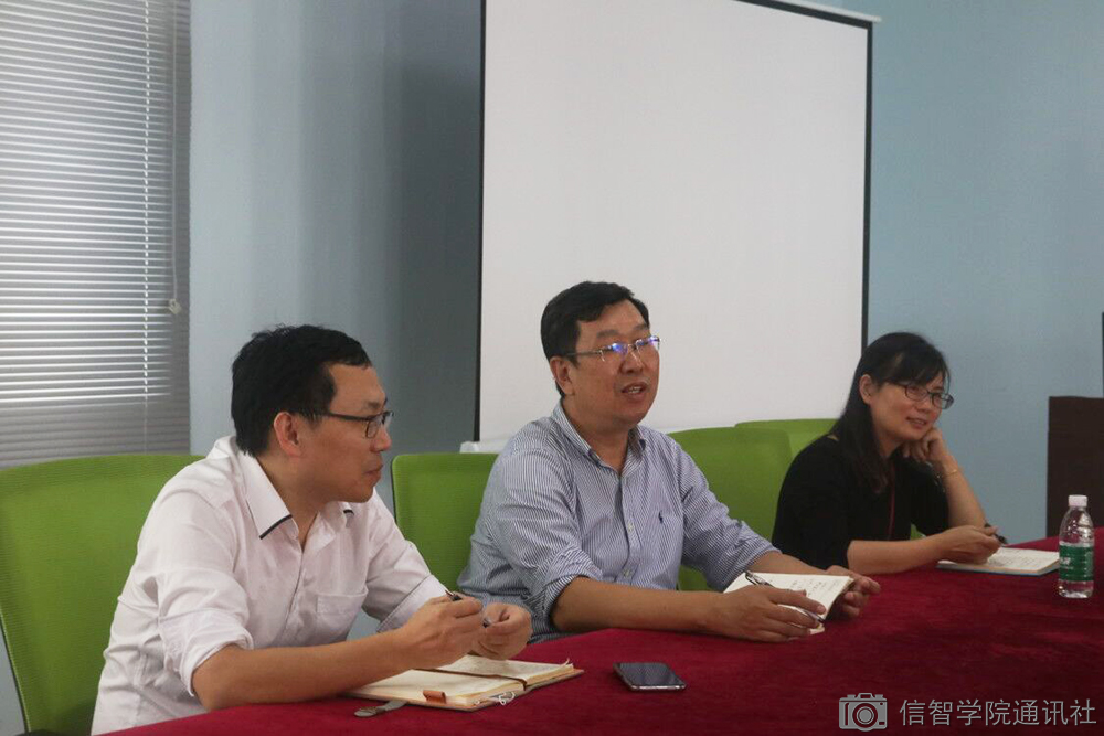 随后,班委及员工代表踊跃发言,分别提出在考研就业方面的困惑,各抒己见,老师们耐心解答,现场氛围十分活跃。杨经理还针对同学们提出“计算机零基础,是否需要学习各种语言来实现自我提升”的问题做出了详细回答,明确指出任何语言没有绝对的优势或者劣势,适合自己的才是最好的。并让同学们不要焦躁,“欲速则不达”,应按照设定的课程体系脚踏实地学习,大胆尝试,不断思考,不因新兴专业而退缩。肖教授与杨教授强调智能科学与技术是以软件为主,硬件为辅的专业,培养目标是人工智能上的专业性人才。而后,由段教授简单对海南自贸港建设进行分析,希望同学们抓住自贸港建设的机遇,以梦为马,不断前进。最后,由班委与员工代表表达自己对老员工活的展望以及自我人生的规划。