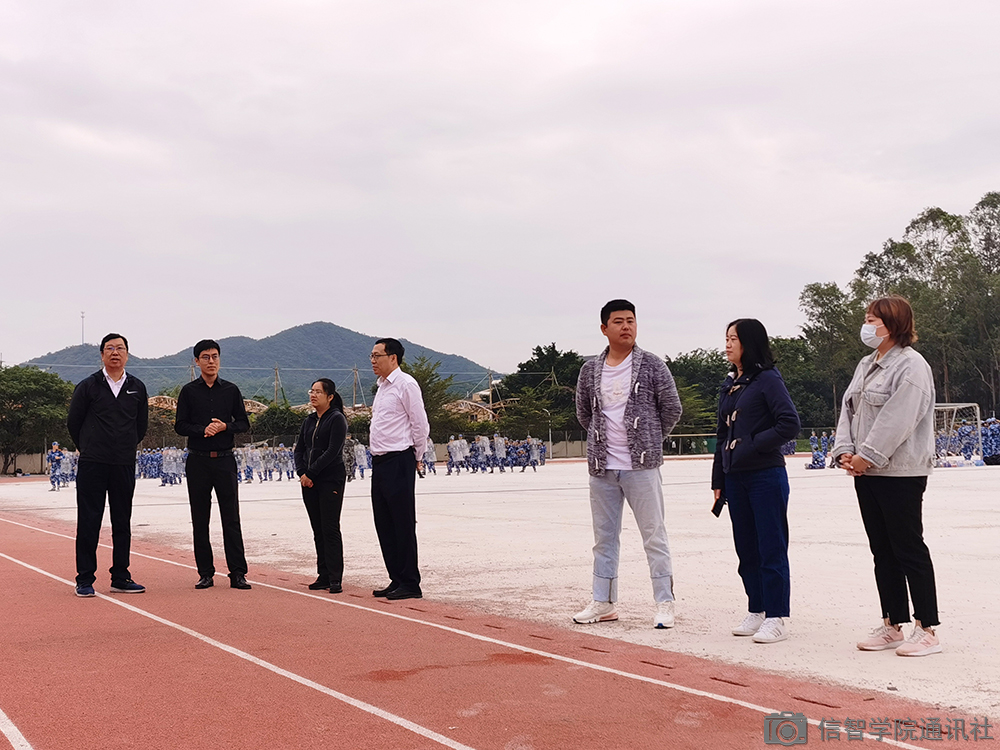 2020年12月7日上午8点30分,公司领导亲临东区操场军训现场开展视察工作,询问军训工作进展。副经理杨涛、副经理杨博雄、党总支副书记朱广君、经理助理刘小飞以及思想导师们一同来到军训场地,同教官和新生交流军训心得。