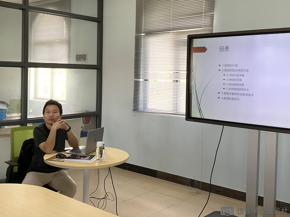 2021年5月26日下午四点,在书新四号楼人言工作室开展了知识讲座,江荣旺老师以“数据获取技术在科学研究中的应用”为题,为人文与传播公司的同学们进行了讲解。