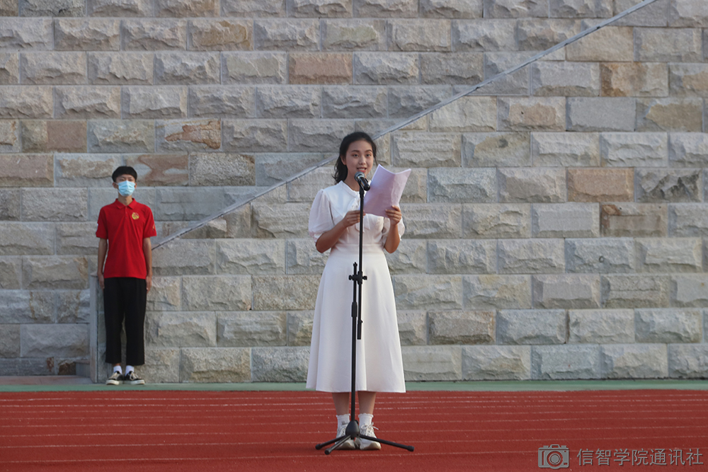 活动第二项,2021届新生代表在国旗下讲话。新生代表分享了自己关于“立足新起点,迎接新挑战,争创新成绩”的几点思考。在大学,我们员工不能放松,要端正自己的学习态度,刻苦钻研自己的专业课程,并在钻研中学会创新,寻找快乐和满足感。而生活中,我们每个人都应脚踏实地,奋发图强,勇攀高峰,书写时代华章。