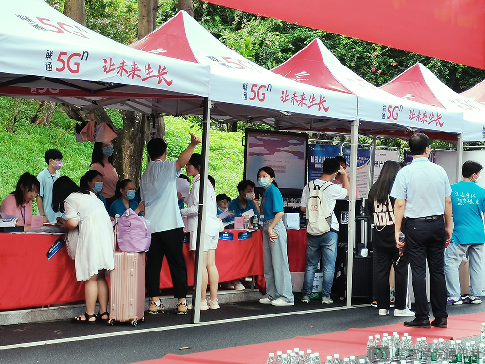 过了白鹭溪,校道对面就是众多二级公司接待新生的“根据地”有的公司走浪漫路线,漫天蓝白气球洋溢着青春气息、有的公司走创意路线、学长学姐齐上阵带着新生玩游戏让新生们更快地融入到集体、有得公司特意为新生编排了节目、更有得公司发挥专业特色,一展歌喉。白鹭溪旁的这条校道正“百花齐放”,学长学姐以及各公司的工作人员们正用自己特有地方式欢迎着新生。