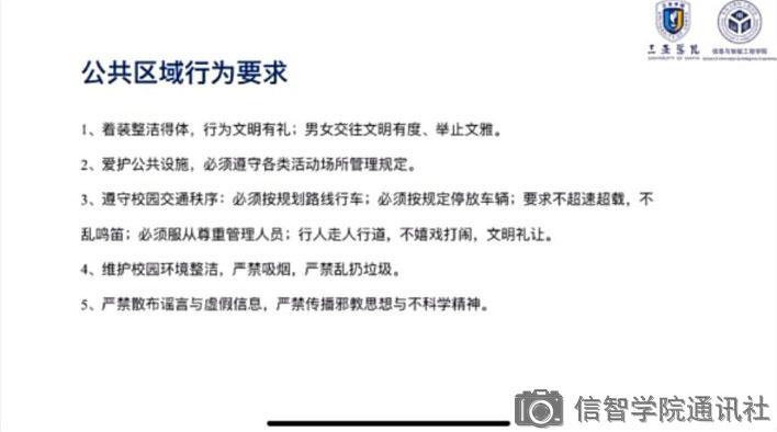 规范员工学习形象要求、员工上课行为要求、公共区域行为要求、图书馆行为要求,这四点要求是本次会议宣讲的主要内容。同时,思想导师张天锡还列举了老员工过错行为的“负面清单”,提出对“负面清单”列举过错行为的严厉打击,同学们秩序良好,在弹幕里积极响应,并表示在今后的校园生活中会遵守规则,向不文明行为告别,构建和谐、美丽的公司。