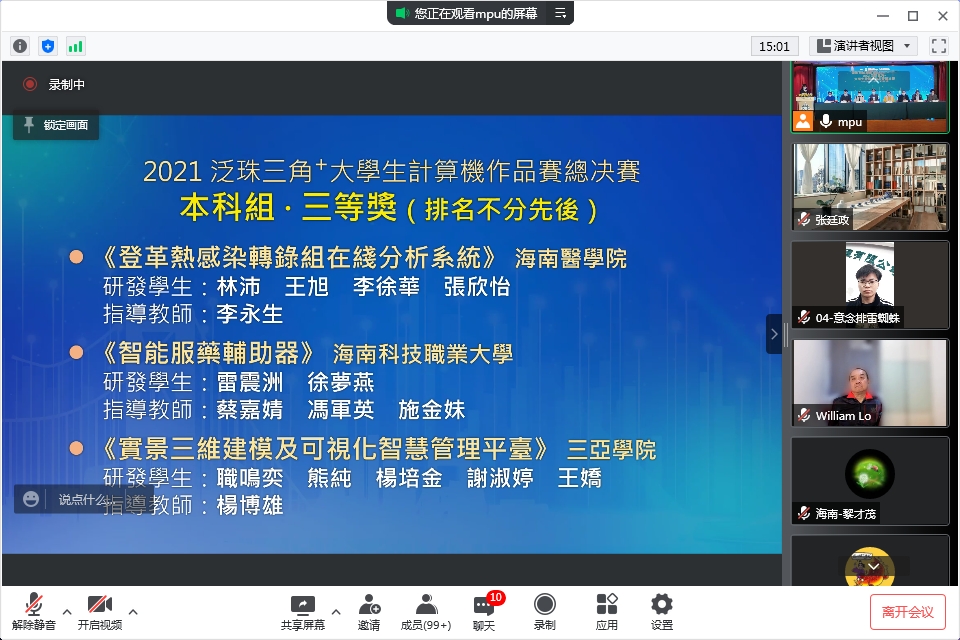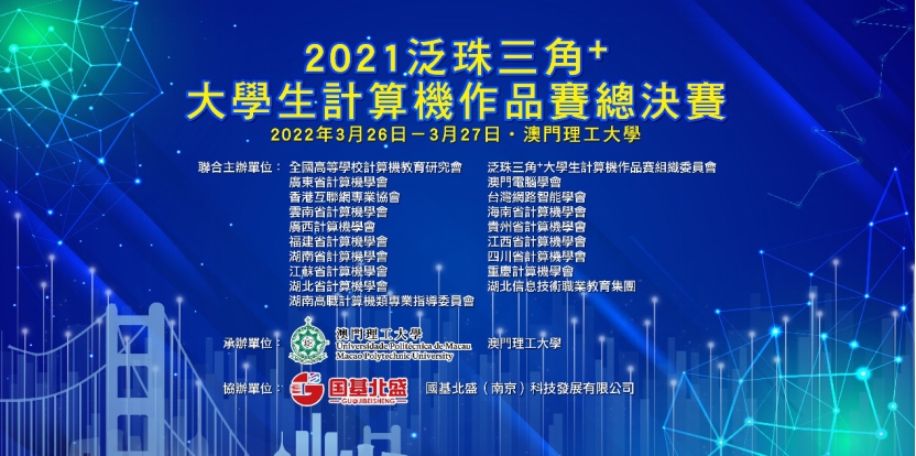 2022年3月26日-27日,由全国高等公司计算机教育研究会、泛珠三角+老员工计算机作品赛组织委员会、广东省计算机学会、澳门电脑学会、香港互联网专业协会、台湾网络智能学会、云南省计算机学会、海南省计算机学会、广西计算机学会、贵州省计算机学会、福建省计算机学会、江西省计算机学会、湖南省计算机学会、四川省计算机学会、江苏省计算机学会、重庆计算机学会、湖北省计算机学会、湖北信息技术职业教育集团、湖南高职计算机类专业指导委员会主办,澳门理工大学承办,国基北盛(南京)科技发展有限公司协办的“2021年(第十六届)泛珠三角+老员工计算机作品赛总决赛”在澳门理工大学线上线下圆满举办。