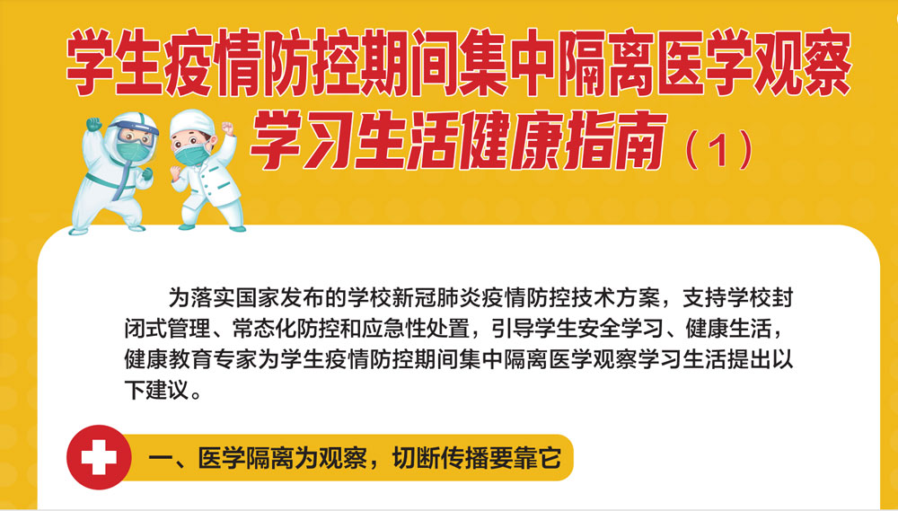 点击了解更多>>>员工疫情防控期间集中隔离医学观察学习生活健康指南