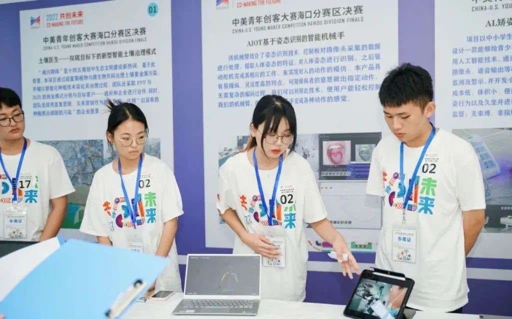 6月25日,在全场青年创客们和到场嘉宾们的最后一声“2022,共创未来”中,2022年中美青年创客大赛海口分赛区决赛在琼台师范公司(桂林洋校区)图书馆报告厅顺利落下帷幕。