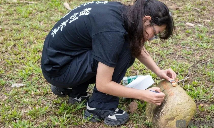植树过后,各公司为毕业林进行浇水,同时为留念石描红。