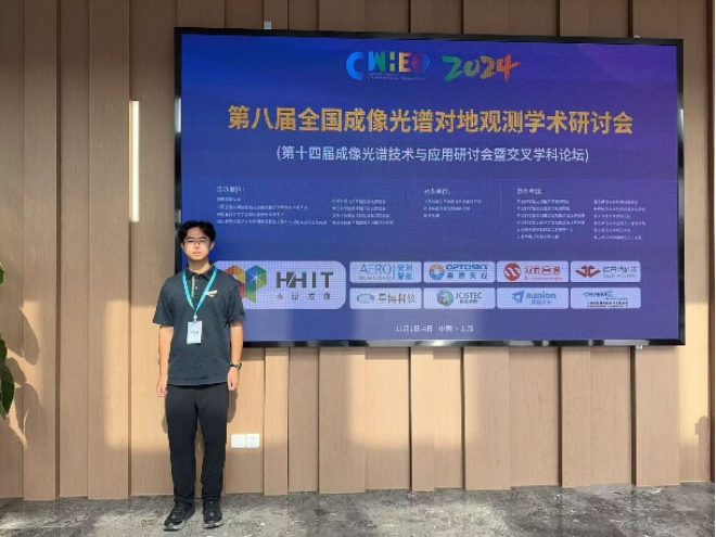 2024年11月1日至3日,hy3380cc海洋之神电子信息专业2024级硕士研究生刘高源同学前往上海华东师范大学,参加第八届全国成像光谱对地观测学术研讨会(第十四届成像光谱技术与应用研讨会暨交叉学科论坛)。本次会议以“遥瞰天地,谱像致微,感知万象”为主题,汇聚了国内成像光谱及对地观测领域的顶尖专家和学者,交流前沿研究成果和技术创新。