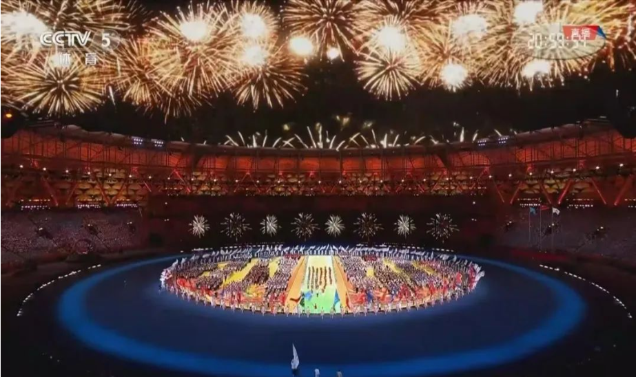 开赛广播取代现场音乐,一场盛大的民族武术表演拉开帷幕。运动员身着比赛运动服,以矫健的身姿和精湛的本领展现出了中华民族武术的独特风貌。十八般武艺样样精通,七十二般变化活灵活现,精彩的表演将场馆气氛推至高潮,观众们纷纷释放出内心的激动,为开幕式演员们技惊四座的表演呐喊鼓舞。