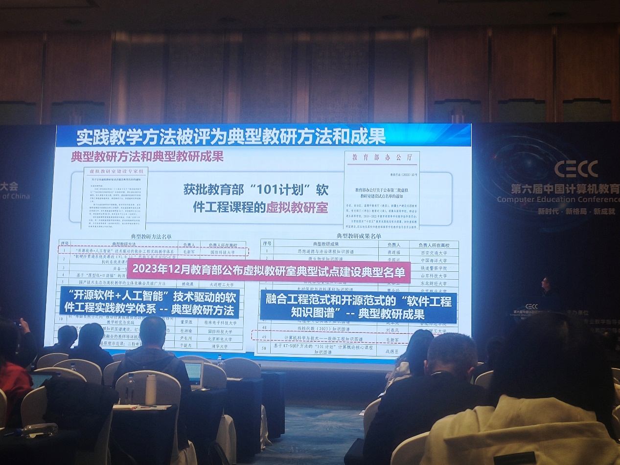 12月7日下午和12月8日上午是由四大计算机教学指导委员会并行举办的分论坛,12月7日下午,两位老师有幸参加了两个分论坛,特色化软件人才培养分论坛,该论坛聚焦特色软件人才培养,就如何培养特色软件人才,如何通过人工智能赋能软件人才培养展开深入讨论和AI大模型驱动的高等教育改革发展论坛,该论坛主要介绍了AI大模型如何引领高等教育改革,展示AI大模型赋能高等教学工作的最新成果和实践经验。12月8日上午参加了‘101计划’大会论坛,该论坛汇聚了参与"101计划”建设的知名专家学者,介绍和交流项目在核心课程、核心教材、核心团队、核心实践项目方面的阶段性成果,并探讨未来的发展方向。
