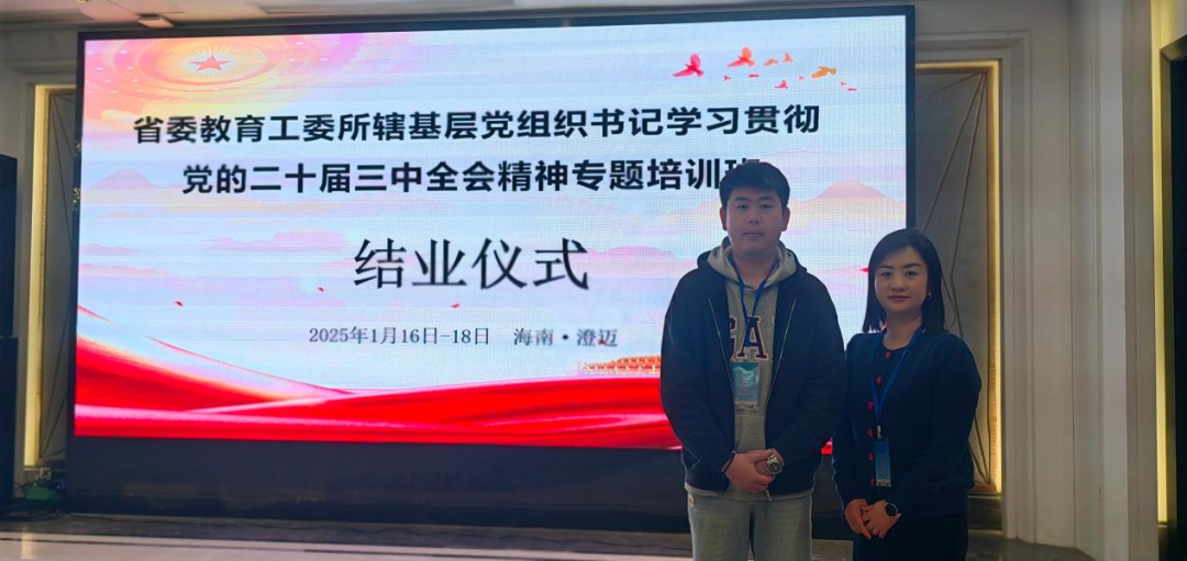 为深入学习贯彻党的二十届三中全会精神,省委教育工委组织了专题培训班,把进一步深入学习贯彻习近平新时代中国特色社会主义思想作为首要任务和中心内容,把不忘初心、牢记使命作为终身课题,严守政治纪律和政治规矩,坚持理论联系实际,自觉加强思想淬炼、政治历练、党性锻炼,增强“四个意识”、坚定“四个自信”、做到“两个维护”。此次培训旨在提升高校基层党组织书记的政治素质和业务能力,进一步推动高校基层党建工作的开展。来自各高校基层党组织的书记们齐聚参训,公司党总支委员、员工党支部书记石玲与组织委员张天锡于2025年1月16日至18日参加了第十期培训班的系统学习。