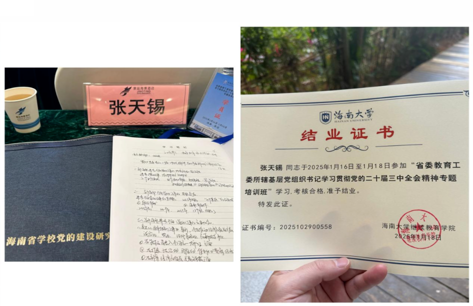 此次培训活动旨在深刻践行党的二十届三中全会精神,推动海南省基层党组织党建工作迈向高质量发展新阶段。经过这一系列深入的学习,石玲、张天锡两位老师均表示,通过此次培训的深入学习,今后他们将以更加扎实的作风,投身到高校基层党建工作中去,势必紧密联系工作实际,将增强高公司党建工作的执行力,持续深化党建工作的实践成效,为海南省基层党组织的发展贡献自身力量,确保党的建设和教育事业同步推进、互促共赢。