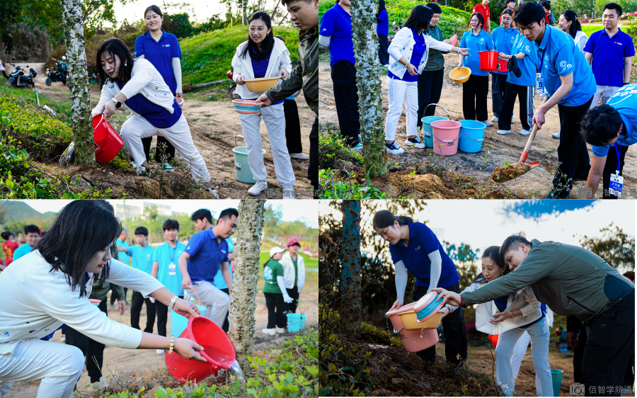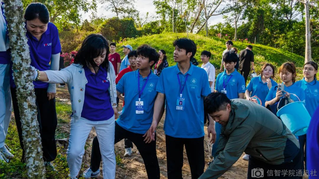 阳春三月,万物复苏。暖阳高照下的三花岛,人头攒动,处处洋溢着蓬勃生机与活力,师生们携手在这里种下二十多棵三角梅和木棉,为校园增添一抹亮丽新绿。为践行绿色发展理念,增强师生爱护环境的意识,信息与智能工程公司党总支副书记尹娜、团委副书记石玲、思想导师代表韩钰定、李娟、乔姗于2025年3月12日16:30参与公司在“三花岛”举办的植树节种植活动。